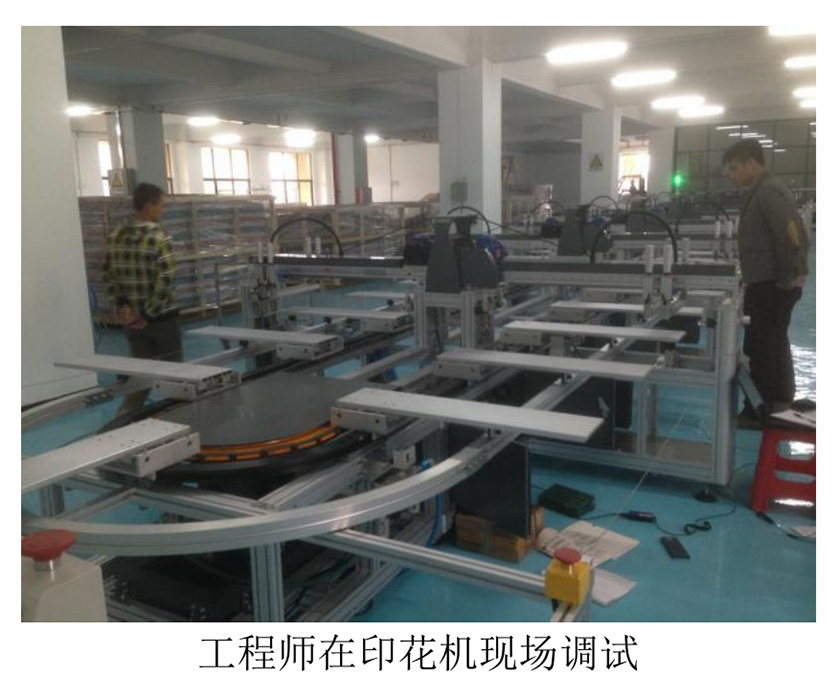 印花機可分為 8 色,12 色,24 色等等,顏色越多工位就越多,需要的電機和變頻器就越多,但應(yīng)用起來也主要是分兩種應(yīng)用,一個是主臺板的,一個是每個工位上的刷頭的,下面就逐一介紹一下。