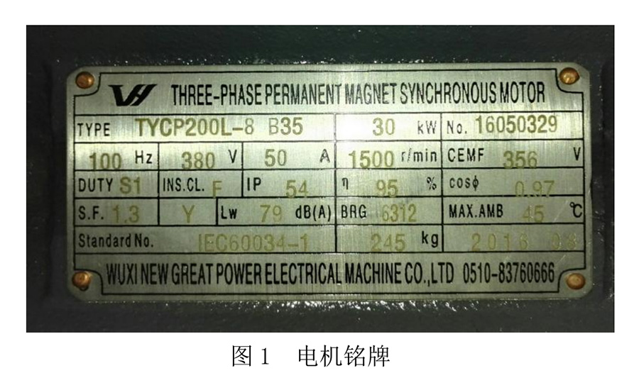 我們選用的是30KW的FC360變頻器,驅(qū)動的是30KW的三相交流永磁同步電機(jī),電機(jī)磁極數(shù)為8極,額定頻率為100Hz,具體電機(jī)參數(shù)如圖1銘牌所示。FC360采用VVC+控制原理,配置過程閉環(huán)模式后,試運(yùn)行十分流暢,但停車后會有一點點慣性反轉(zhuǎn)現(xiàn)象。后來發(fā)現(xiàn)是由于空壓機(jī)本身的機(jī)械慣性導(dǎo)致的,為了克服慣性問題,我們在變頻器上加了一點點直流制動,效果馬上就體現(xiàn)出來了,能做到說走就走,說停就停的效果。值得注意的是,變頻器對同步電機(jī)的電機(jī)參數(shù)比較敏感,所以事先跟電機(jī)廠家確定好電機(jī)的定子阻抗和d軸電感這兩個參數(shù),效果會更佳。
