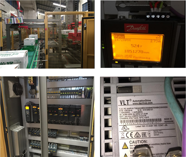 這次在東莞市莞怡食品飲料有限公司(生產(chǎn)怡寶品牌飲用水)的紙箱堆垛機(jī)上選用的丹佛斯 FC302+IMC 方案,通過(guò)現(xiàn)場(chǎng)實(shí)際運(yùn)行證明 IMC 定位控制功能加上帶有編碼器反饋的異步電機(jī)拖動(dòng)系統(tǒng),可以很好的達(dá)到原設(shè)備的功能和生產(chǎn)要求,客戶(hù)也對(duì)丹佛斯 FC302 系列變頻器高性能表現(xiàn)給予了強(qiáng)烈的肯定。
