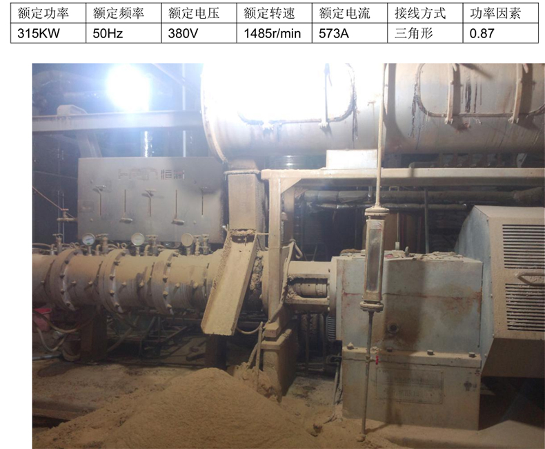 2、 、 改造設(shè)備概述: :客戶要求改造的設(shè)備為膨化機(jī),達(dá)315KW 功率(實(shí)際銘牌數(shù)據(jù)如下表1)。膨化機(jī)工作原理為:利用膨化機(jī)的不等距非標(biāo)準(zhǔn)螺旋系統(tǒng)的擠壓推進(jìn),物料中的氣體被排出,并迅速被物料填充,物料受剪切力作用而產(chǎn)生回流,使機(jī)膛內(nèi)的壓力增大,隨著摞旋與機(jī)膛間的磨擦使物料充分混合、擠壓、加熱、膠合、糊化而產(chǎn)生組織變化,原有的結(jié)構(gòu)受到破壞,同時(shí)機(jī)械能通過(guò)物料在膛內(nèi)的磨擦作用而轉(zhuǎn)化為熱能,使物料成為具有流動(dòng)性質(zhì)的膠凝狀態(tài),物料被擠壓到出口時(shí)壓力由高壓瞬間變?yōu)槌?,由高溫瞬間變?yōu)槌兀斐伤盅杆俚貜慕M織結(jié)構(gòu)中蒸發(fā)出來(lái),使其內(nèi)部形成無(wú)數(shù)微孔結(jié)構(gòu),再通過(guò)切割裝置,切割冷卻即膨化成形。
