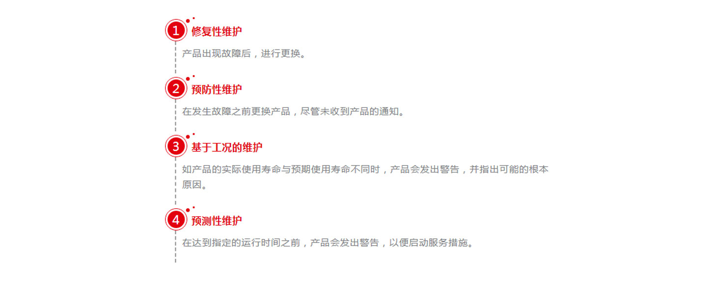 為何需要基于工況的維護(hù)?就是要在故障真正發(fā)生之前檢測(cè)潛在的故障。而修復(fù)性和預(yù)防性維護(hù)是根據(jù)故障(事件)或時(shí)間進(jìn)行的,是機(jī)器設(shè)備在出現(xiàn)故障(修復(fù)性)或達(dá)到預(yù)先設(shè)定的運(yùn)行時(shí)間(預(yù)防性)后予以維護(hù)。這類型的維護(hù)不使用來(lái)自實(shí)際應(yīng)用的任何反饋。