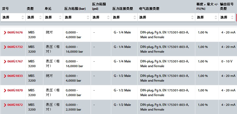這款靈活的壓力變送器系列包括 4-20 mA、0-5 V、1-5 V、1-6 V 和 0-10V 輸出信號(hào)、絕對(duì)壓力和表壓(相對(duì)壓力)型號(hào)、從 0-1 到 0-600 bar 的測(cè)量范圍以及規(guī)格齊全的壓力和電氣連接。