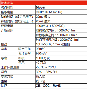 ● 觸點電流為5A (2CO), 5A (4CO)
