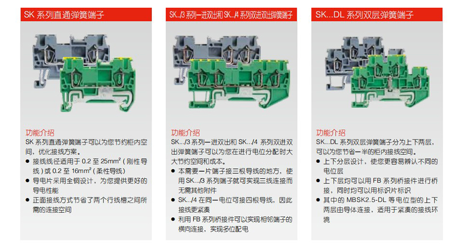 ● 先進(jìn)的回拉式彈簧設(shè)計(jì),保證足夠大的接觸面積和壓緊力● 拆卸安裝方便,節(jié)省安裝時(shí)間● 更好的抗振性能,適用于軌道、機(jī)械等振動(dòng)較大場(chǎng)合● V0阻燃等級(jí)塑料,杜絕火災(zāi)隱患● 100%鹽霧測(cè)試,防腐蝕,更長(zhǎng)的使用壽命
