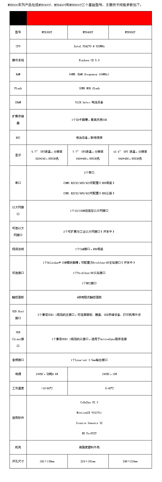 MT6000是步科電氣人機界面中的高端產品,其性能強大的intelPXA270520MHz處理器和界面友好的WindowsCE操作系統(tǒng),將給你帶來全新的使用體驗。其開放式的編程環(huán)境和強大的通訊能力使其非常適用于工業(yè)自動化、樓宇自動化和智能家居等應用領域。