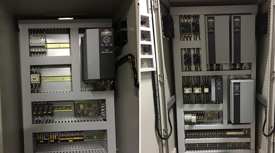 6、當(dāng)變頻器出現(xiàn)故障時(shí),可通過柜門上轉(zhuǎn)換開關(guān)切換到工頻運(yùn)行模式,極大保障系統(tǒng)的穩(wěn)定運(yùn)行;
