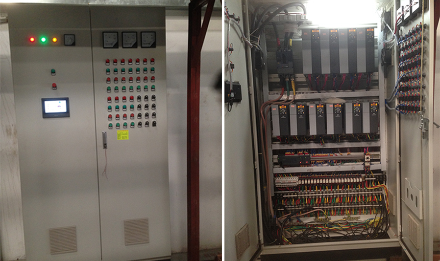 該系統(tǒng)設(shè)計(jì)之初,均沒(méi)有考慮冷卻泵、冷凍泵、循環(huán)泵采用變頻控制(如下表1),而是采用傳統(tǒng)的星三角啟動(dòng)方式(舊電柜見(jiàn)下圖1),根據(jù)對(duì)系統(tǒng)運(yùn)行工藝的觀察,泵總功率110.5KW,電能浪費(fèi)嚴(yán)重,存在較大的節(jié)能空間。