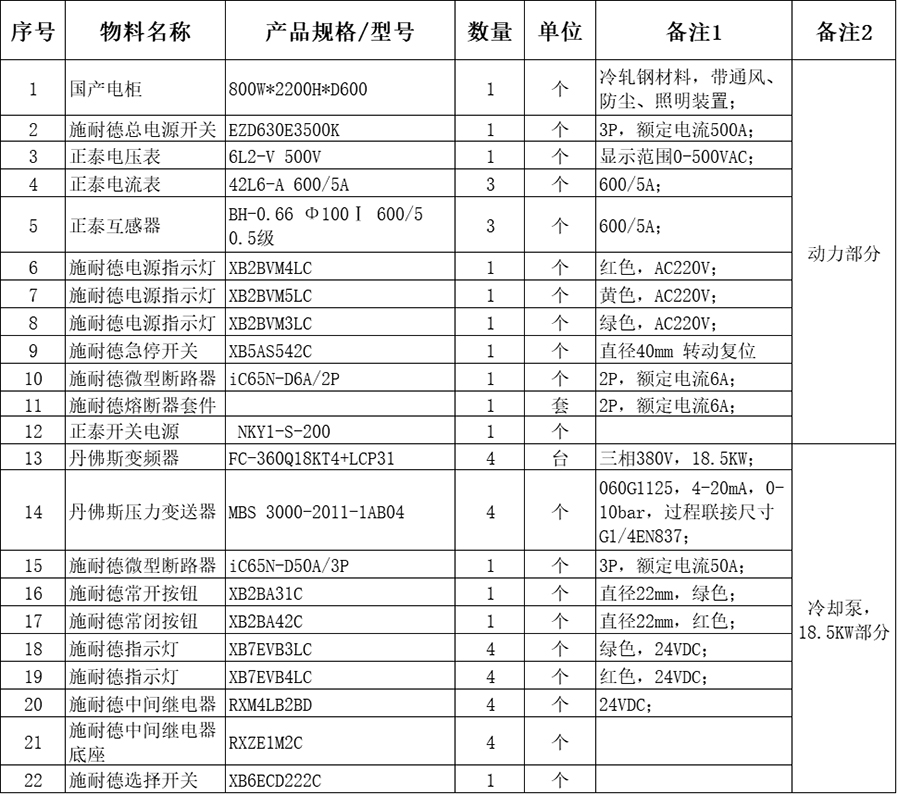冷卻泵 | 3臺(tái) | 18.5KW | 星三角 |