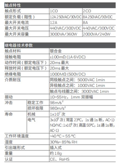 2.超大電流,1CO 觸點(diǎn)高達(dá) 12A,2CO 觸點(diǎn)高可達(dá) 8A