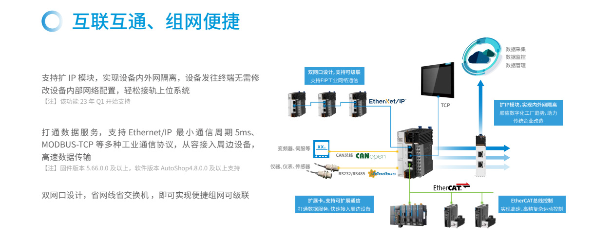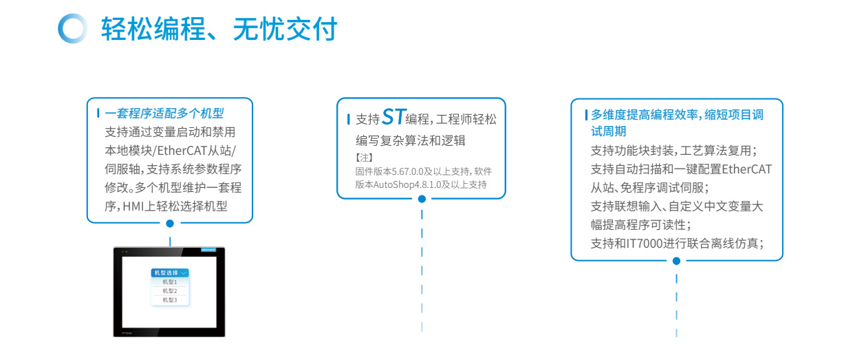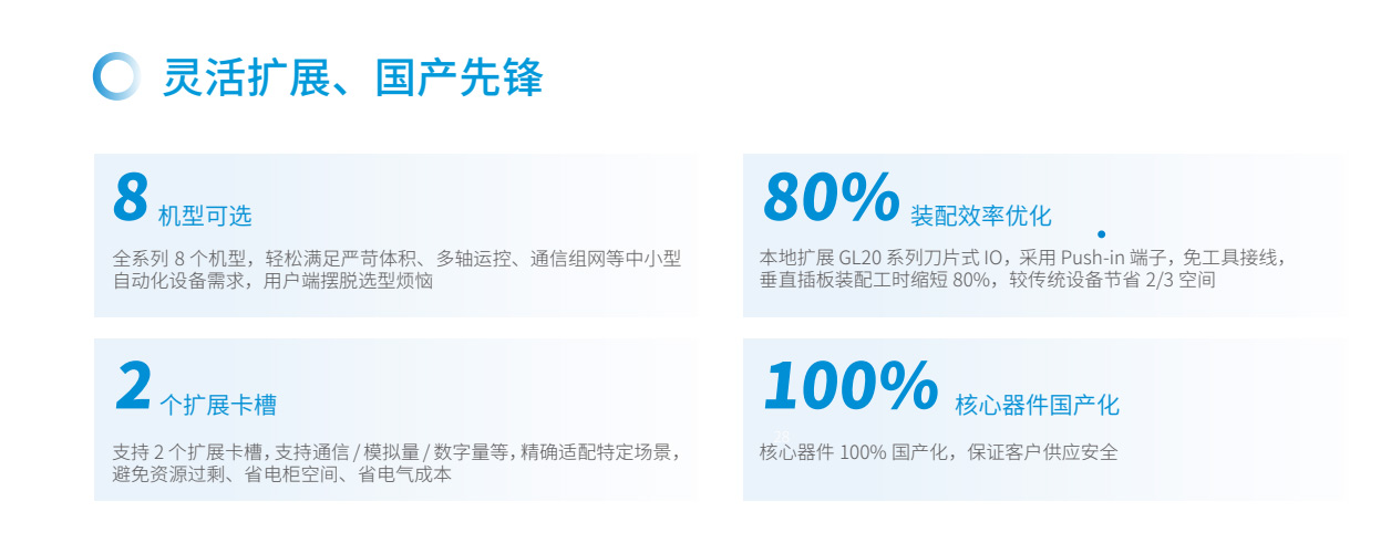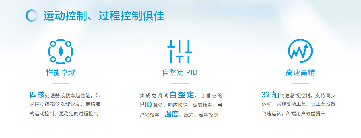 易實(shí)現(xiàn)運(yùn)動(dòng)控制、過(guò)程控制易選型、易擴(kuò)展易互聯(lián)、易組網(wǎng)易編程、模塊化易交付、100%核心器件國(guó)產(chǎn)化